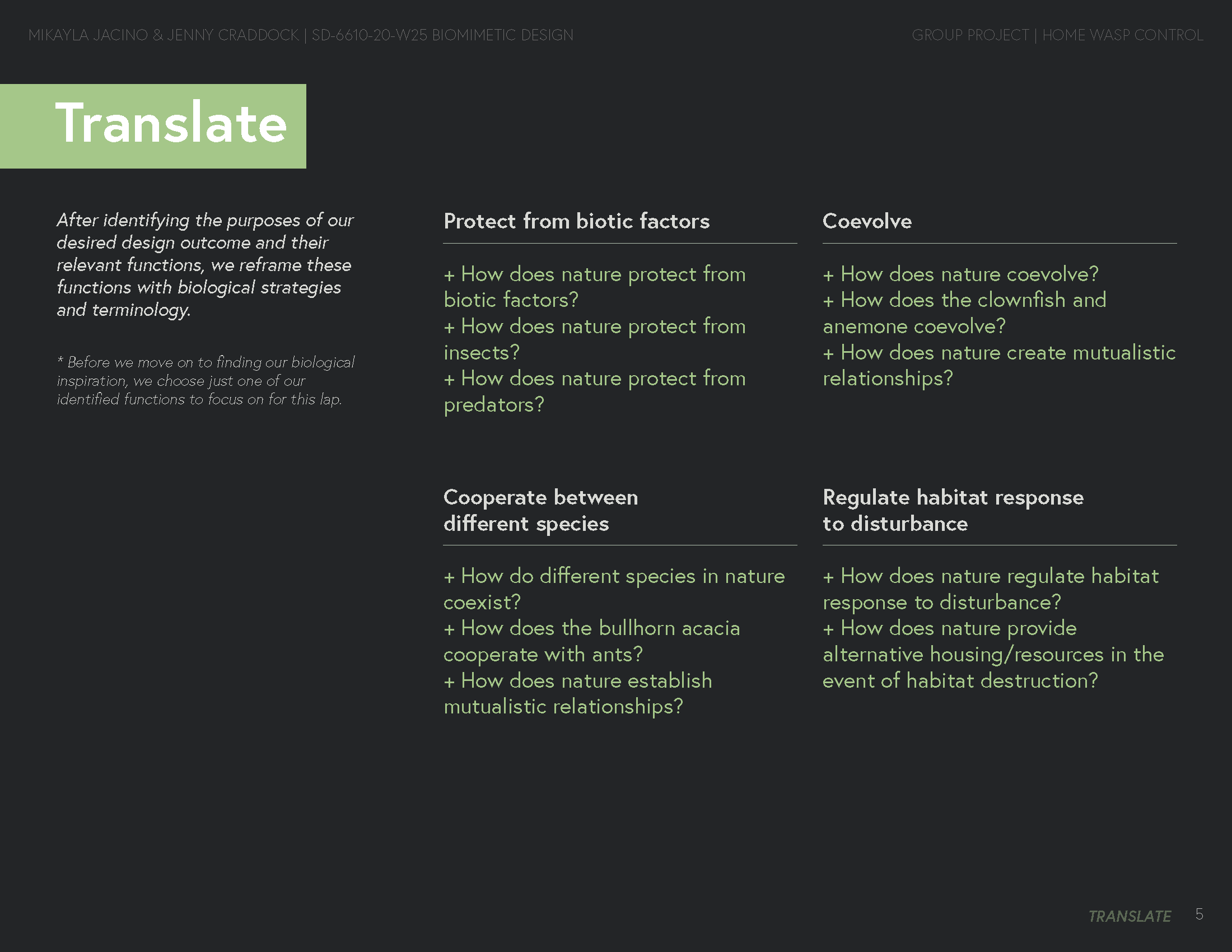 Implementing the biomimetic design process for deterring yellow jacket wasps from nesting in residential structures